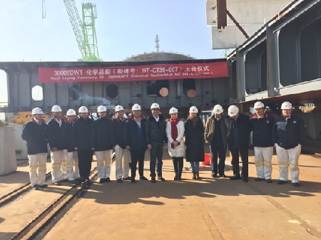 2017年1月20日,韓通為中化船務(wù)有限責(zé)任公司建造的38000噸不銹鋼化學(xué)品運輸船(船體號:HT-CT38-007)上臺儀式順利舉行,該船入LR 和CCS船級社。公司領(lǐng)導(dǎo)、船東、船級社代表參加該儀式。