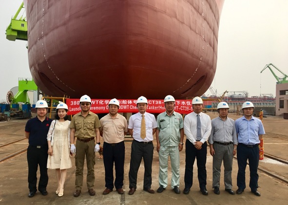 2017年6月1日,我司為船東中化船務(wù)建造的38000DWT不銹鋼化學(xué)品船(船體號(hào):HT-CT38-007)順利下水,該船入LR 和CCS船級(jí)社。公司領(lǐng)導(dǎo)、船東、船檢代表參加該下水儀式。