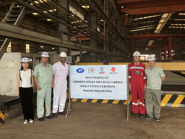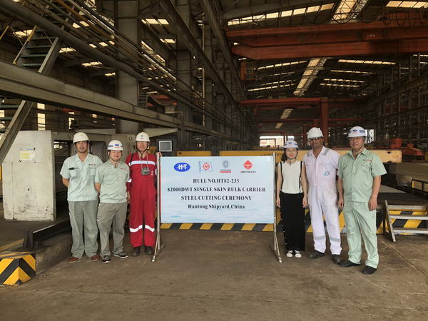 2018年8月20日,我司為日本Nisshin船東建造兩艘82000噸散貨輪(船體號:HT82-221、HT82-235)同時開工,該船入BV船級社。公司領導、船東代表及船級社代表參加了該儀式。