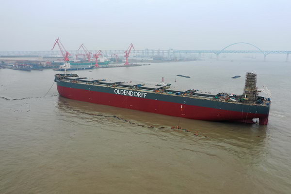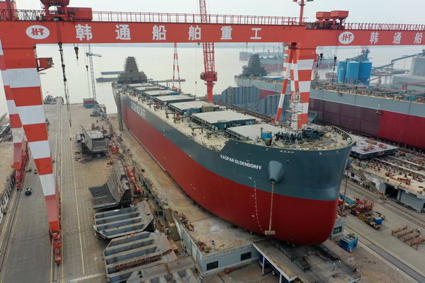 2019年11月13日下午3點35分,我司為德國Oldendorff公司建造的82K散貨輪(船體號:HT82-216)成功下水。船東、船檢及公司領(lǐng)導(dǎo)參加了下水儀式。