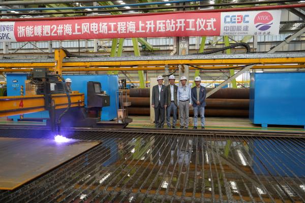 浙能國電投嵊泗2#海上升壓站開工儀式在業(yè)主單位和各參建單位代表共同聯(lián)手按下點火按鈕并成功開始切割后圓滿結(jié)束。