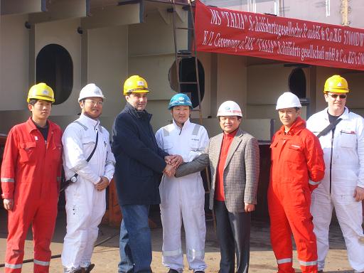 12月16日,在韓通船舶重工的船臺舉行了57000DWT散貨輪(HT016)上臺儀式,該船為德國Peter Dohle公司建造,入LR級,是該船東系列船的第一艘,將在2009年3月下水,5月底交船,江蘇弘業(yè)公司提供保涵.