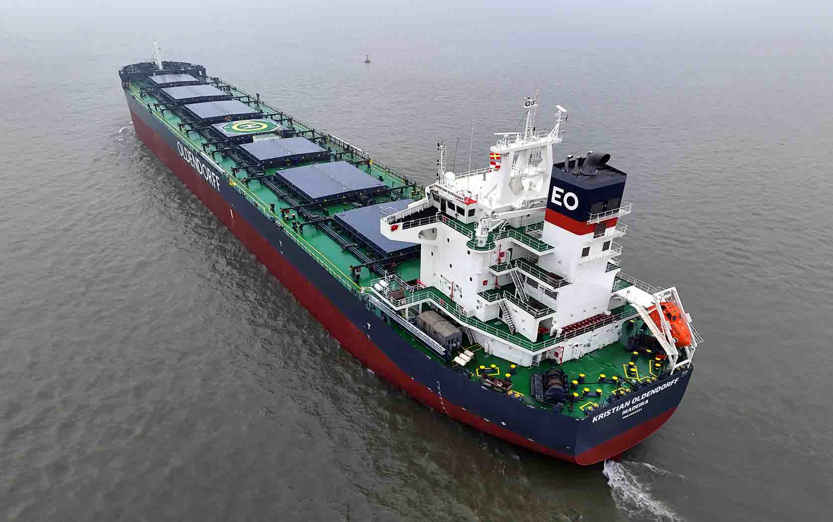 2024年2月1日,韓通為德國船東OLDENDORFF建造的82000噸散貨輪 “Kristian Oldendorff”(船體號:HT82-275)順利簽字交付,HT82-275是系列船中的第11艘,也是順利交付給OLDENDORFF的第30艘船舶,入LR船級社。該船總長229米,型寬32.26米,型深20.35米,設(shè)計吃水12.2米,設(shè)計航速14.0節(jié),具有油耗低、綠色環(huán)保、適應(yīng)性能強、節(jié)能高效等諸多優(yōu)點,屬于目前航運市場主流的散貨船船型。