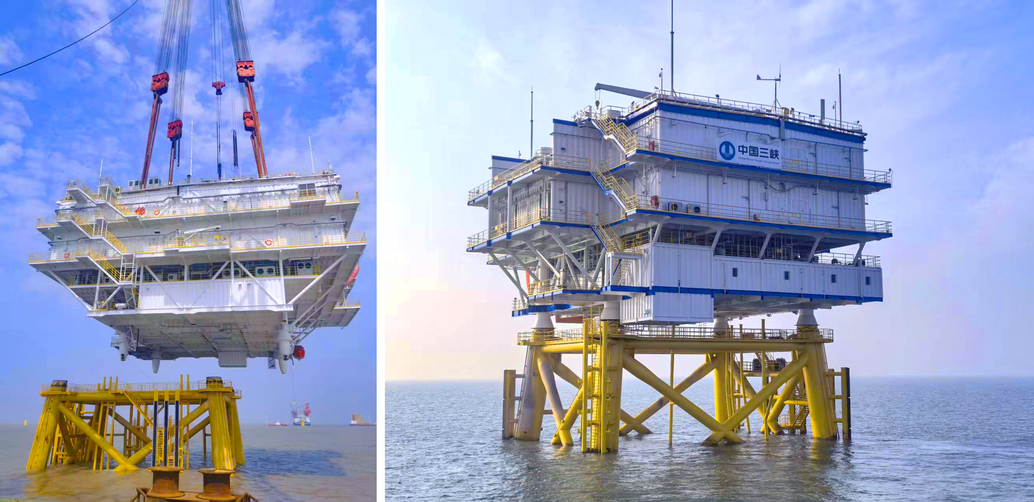 三峽江蘇大豐800MW海上風(fēng)電項目H17、H8-1(6月25日)兩座海上升壓站吊裝順利完成。