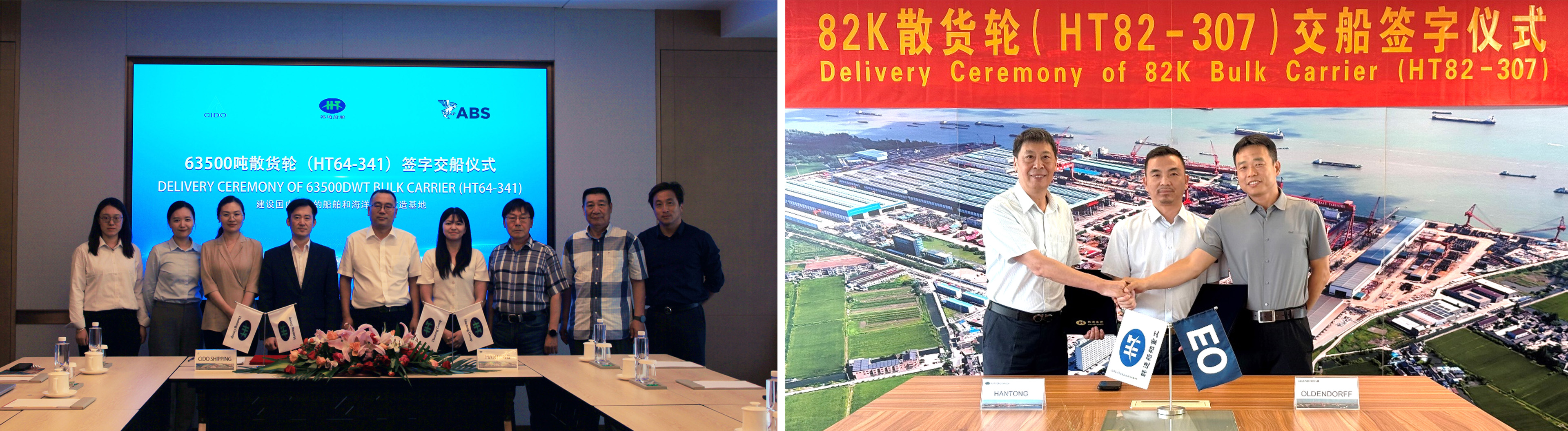 為CIDO及OLDENDORFF建造的HT64-341、HT82-307按期完成交付,憑借優(yōu)異的建造品質(zhì)和高效的交付流程得船東的一致認可。