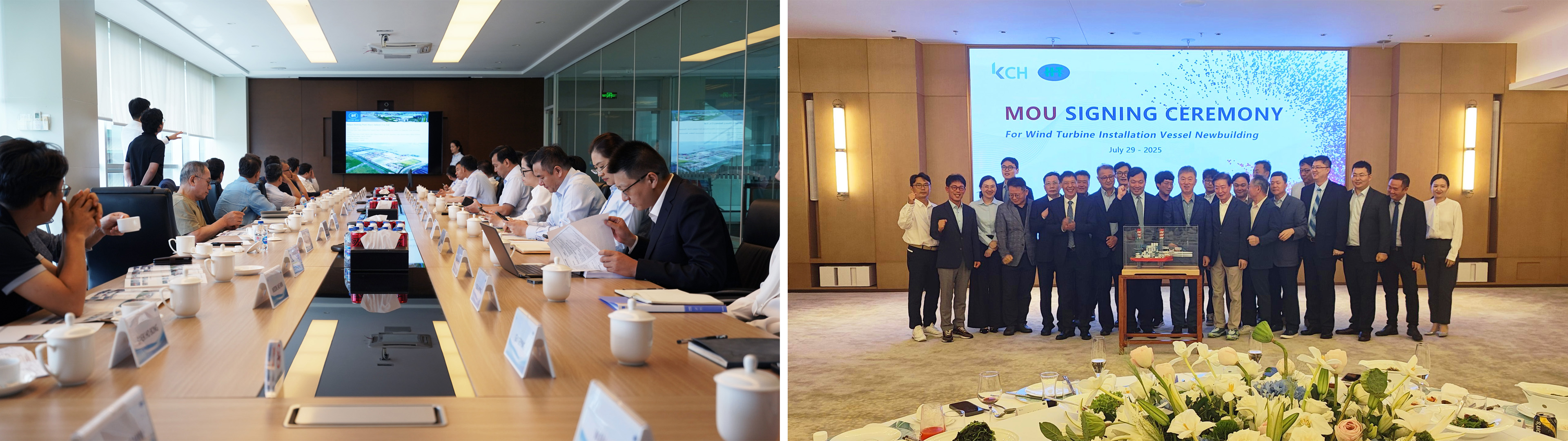 7月29日,公司再傳捷報,與韓國KCH集團就海上風(fēng)電安裝平臺項目達成戰(zhàn)略合作意向,并隆重舉行合作備忘錄簽約儀式。兩大項目的接連落地,標志著公司在全球航運裝備制造領(lǐng)域的市場競爭力持續(xù)提升,為深化國際產(chǎn)能合作注入新動能。