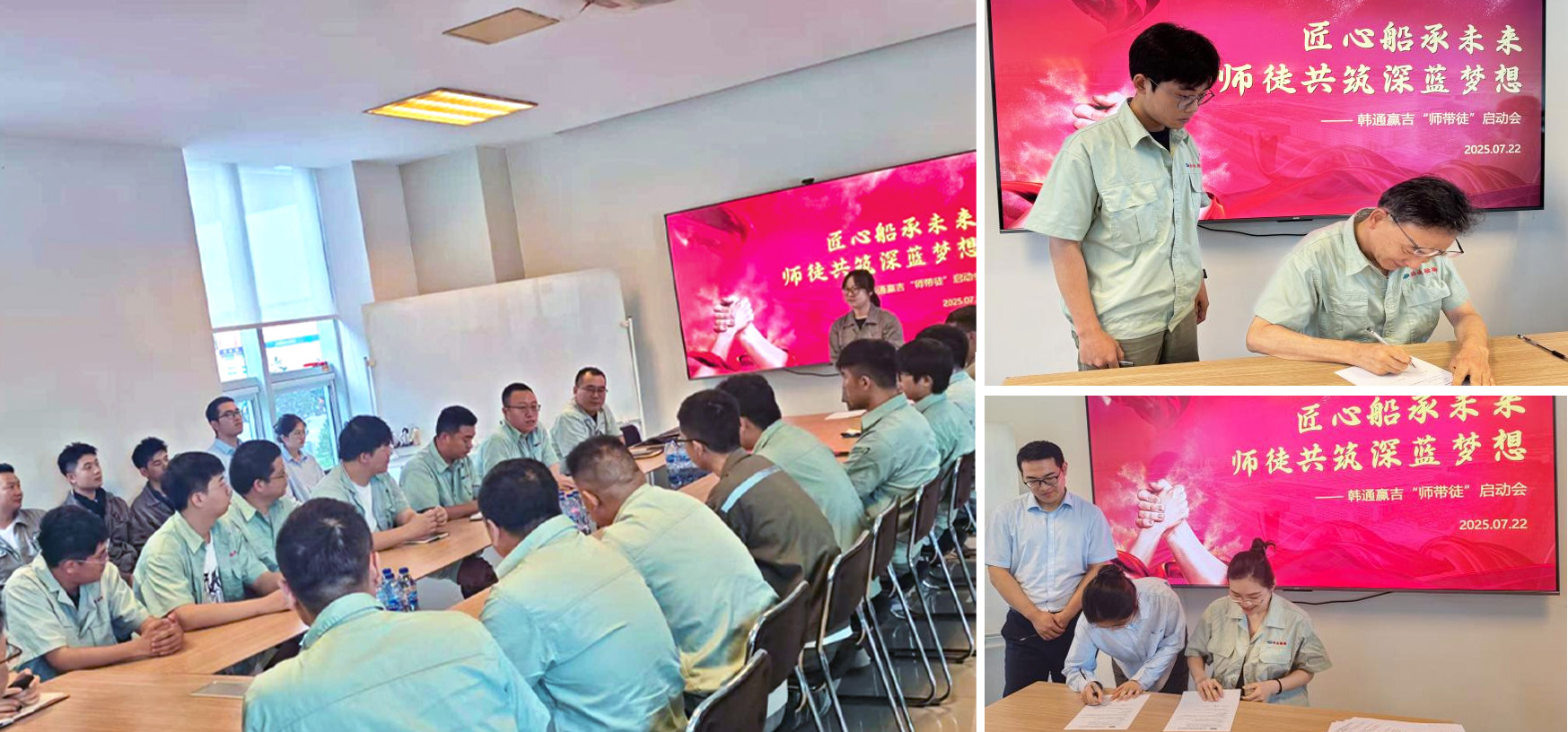 為加強人才梯隊建設(shè),傳承工匠精神,2025年7月22日江蘇韓通贏吉重工有限公司舉行2025年度“師帶徒”活動啟動會。公司常務(wù)副總經(jīng)理林先群、副總經(jīng)理何建軍、部門負責(zé)人周海燕及首批34對師徒代表參加活動,共同見證這一薪火相傳的重要時刻。