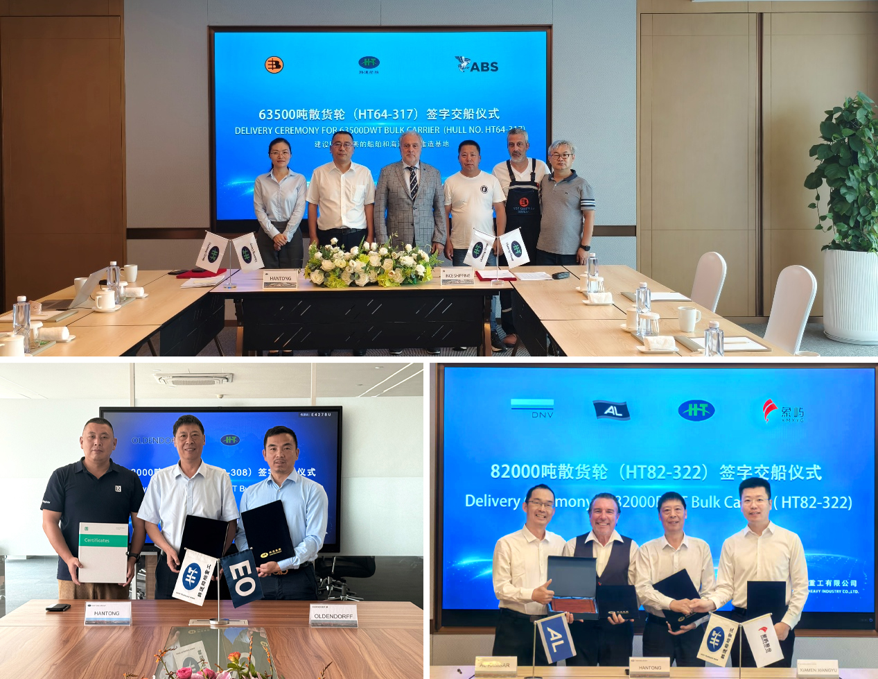 為OLDENDORFF、AL及IBULK建造的HT82-308、HT82-322、HT64-317提前完成交付,憑借優(yōu)異的建造品質(zhì)和高效的交付獲得船東的一致認(rèn)可。