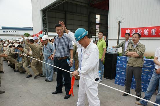 2009年7月17日下午16:00,韓通船舶重工首屆“人和杯”拔河比賽在公司24米主干道上隆重舉行。首先,武亦文總經(jīng)理進(jìn)行了開幕致詞,充分肯定了這次活動的意義,并對參賽人員進(jìn)行了鼓勵(lì);陳林軍副總經(jīng)理宣講了比賽規(guī)則以及比賽陣容。隨后,比賽正式開始。