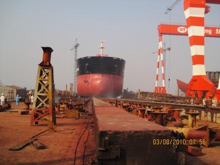 我司為寶源船東建造的57000噸散貨輪(船體號(hào)HT067)于2010年8月3日早上7:45在我司2號(hào)船臺(tái)舉行下水儀式,該船入BV,計(jì)劃于2010年9月30日交船。 武亦文總經(jīng)理及船東代表參加了該儀式。
