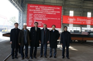 2010年12月8日上午10:30,在我司新船體車間舉行57000噸散貨輪(船體號:HT090)開工儀式,本船為Aquila Shipping LLC 建造的系列船的首制船,該船入LR船級社,計劃于2011年10月31日交船。我司總經(jīng)理武亦文先生,副總經(jīng)理陳興先生及船東船檢代表參加了開工儀式。開工點火后,在韓通會議室簽署了開工文件。