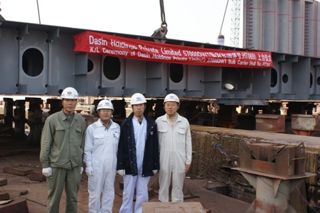 我司為大新船東建造的57000噸散貨輪(船體號:HT069)于2010年12月9日上午10:00在我司1號船臺舉行了上臺儀式,該船入BV船級社,計劃2011年4月30日交船。李繼念副總及船東船檢代表參加了該儀式。