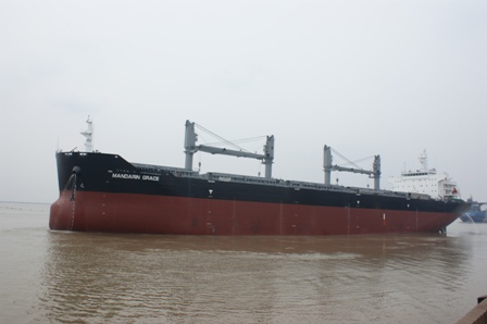 2011年1月28日,我司為大新船東建造的57000噸散貨輪(船體號:HT071)順利交付,該船入ABS船級社。副總陳興跟船東張?zhí)m水先生簽署了交船文件。至此,該船成功交付。