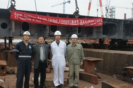 2011年4月21日上午10:00,我司為大新船東建造的57000DWT散貨輪(船體號:HT072)在韓通2號船臺順利上臺,該船入ABS船級社。韓通副總李繼念和船東船檢代表參加了此次上臺儀式。