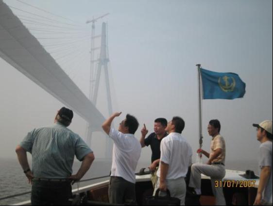二零零七年三月三十一日,韓通船舶重工組織Sevan Marine 駐廠代表及專乘從挪威趕來的海事營運(yùn)經(jīng)理Mr.Kjell Arne Nyhus等有關(guān)人員,乘船參觀了蘇通大橋。