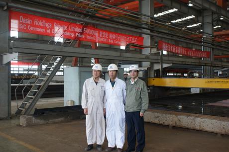 2011年11月7日,我司為大新船東建造的57000噸散貨輪(船體號:HT101)開工儀式在韓通新船體車間順利舉行,該船入BV船級社。潘學(xué)軍副總及船東、船級社代表參加了該儀式。
