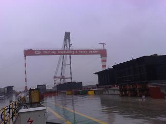9月5日,1號(hào)船臺(tái)2號(hào)200噸門吊順利合攏,預(yù)計(jì)將在9月底投入使用。