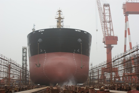 2012年5月10日,我司為春安建造的57000DWT散貨輪(HT100)在韓通3號(hào)船臺(tái)順利下水,該船入NK船級(jí)社。潘學(xué)軍副總,船東代表及船級(jí)社代表參加該儀式。