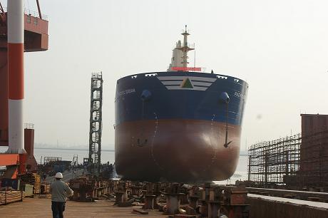 2013年3月29日,我司為韓國三星船東建造的57000DWT散貨輪(HT57-116)在韓通2號船臺順利下水,該船入KR船級社。于剛副總經理,船東代表及船級社代表參加該儀式。
