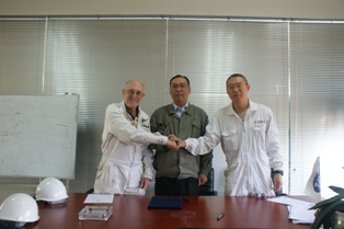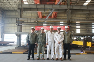 2013年10月28日,我司為日本 NISSHIN 船東建造的64000噸散貨輪(船體號:HT64-128)開工儀式在韓通新船體車間順利舉行,該船入BV船級社。周義慶副總經(jīng)理及船東、船檢代表參加該儀式。