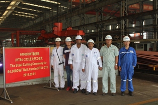 2014年9月1日,我司為FLEET 船東建造的64000噸散貨輪(船體號(hào):HT64-231)開(kāi)工儀式在韓通新船體車間順利舉行,該船入DNV.GL船級(jí)社。周義慶副總經(jīng)理及船東、船檢代表參加該儀式。