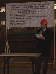 新年伊始,萬(wàn)象更新.2008年元月9日,為寶源國(guó)際建造的第一條57000噸(船號(hào):HT015)在公司切割中心進(jìn)行了隆重的開工點(diǎn)火儀式.參加慶典的人員有韓通公司的領(lǐng)導(dǎo),寶源國(guó)際的劉庚寶董事長(zhǎng),周國(guó)東副總經(jīng)理,LR船級(jí)社以及監(jiān)造公司的李德水總經(jīng)理等.在儀式上,公司執(zhí)行董事武亦文先生代表韓通公司致詞,周國(guó)東先生代表船東方致詞,最后在5號(hào)會(huì)議室,武亦文先生和劉庚寶董事長(zhǎng)互相交換了開工文件.