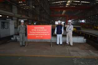 2014年11月28日,我司為德國PD船東建造的38800噸散貨輪(船體號:HT388-167)開工儀式在韓通新船體車間順利舉行,該船入LR船級社。董繼紅總經(jīng)理助理及船東、船檢代表參加該儀式。