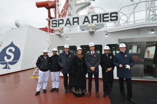 2015年1月6日江蘇韓通船舶重工有限公司迎來了又一個(gè)值得慶祝的日子—HT64-158&159二艘船舶同時(shí)命名。該船是我司為挪威船東SPAR建造,入DNV·GL船級(jí)社。公司領(lǐng)導(dǎo)、船東、船檢代表參加了該儀式。儀式結(jié)束后,船東船檢代表等參觀了HT64-158船,并給予很高的評(píng)價(jià)。