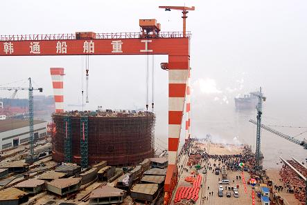 1月23日,韓通重工迎來了一個重要時刻,為新加坡船東建造的第一條57000噸散貨輪,也是韓通重工歷史上第一條完整意義上的機(jī)動船和最大噸位的船舶在韓通重工的2號船臺成功下水。這是全國第一條滿足CSR規(guī)范的57000噸散貨輪,從開工到下水僅僅用時8個月。