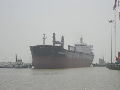 經(jīng)過韓通船舶重工有限公司的所有員工的努力,首制57000噸散貨輪在圓滿完成各項(xiàng)指標(biāo)和測試后于5月29日上午10:00??吭陧n通公司碼頭.武亦文總經(jīng)理在碼頭迎接試航人員一行.該船于2007年6月6日開工,2008年1月23日下水,并將在6月中旬交船,此船為SDARI設(shè)計(jì)的系列船的第一條船,入BV級,船東為新加坡大新公司.