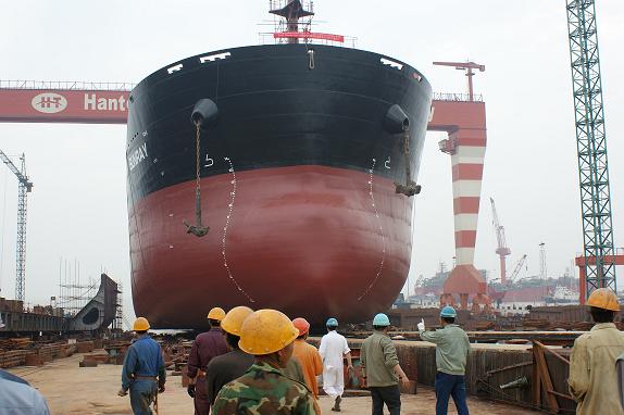 7月10日,江蘇韓通船舶重工有限公司為希臘船東建造的57000噸散貨輪在1號船臺2號滑道順利下水;此為該船東建造系列船中的首制船,代理公司為安徽技術(shù)進(jìn)出口有限公司,入BV級。該船是韓通重工2008年下水的第三條船。