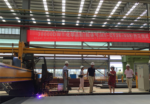 38000噸化學(xué)品船(船體號(hào):HT-CT38-008)成功舉行開工儀式