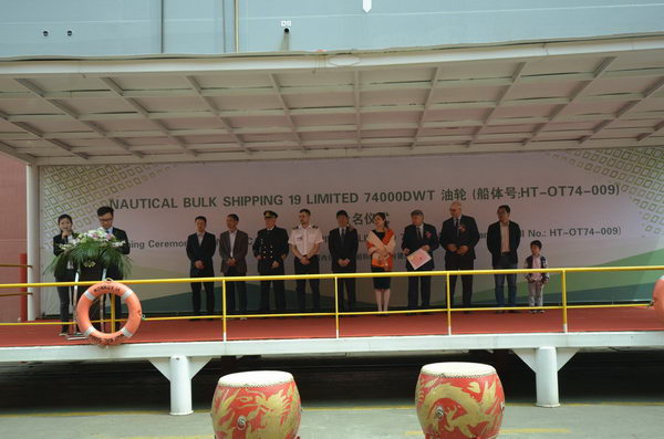HT-OT74-009船是該系列油船的第三艘,由上海船舶研究設(shè)計(jì)院負(fù)責(zé)詳細(xì)設(shè)計(jì),總長(zhǎng)227.98米,型深19.8米,型寬38米。公司領(lǐng)導(dǎo)、船東代表參加該儀式。