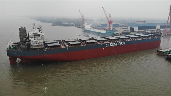 2020年12月2日上午,我司為德國Oldendorff船東建造的第二艘208000噸散貨輪 (船體號:HT208-227)順利出塢。該船入級美國船級社。公司領導、船東、船檢代表參加了上述儀式。