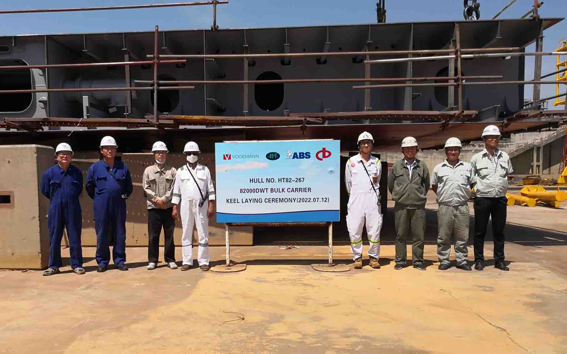 船東建造的首艘82000噸散貨輪(船體號:HT82-267)成功上臺。該船入級ABS船級社。