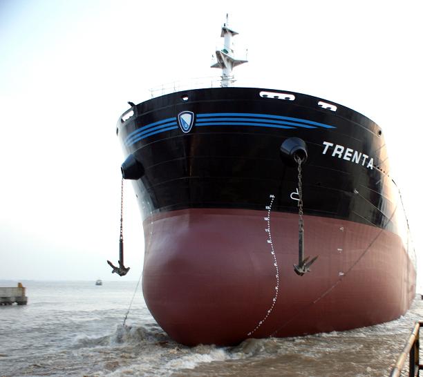 我司為德國(guó)船東建造的57000噸散貨輪(船體號(hào)HT021)于2009年12月18日下午4:30在我司1號(hào)船臺(tái)2號(hào)滑道順利下水,船東SPLOSNA PLOVBA公司董事局主席EGON BANDELJ一行,韓通船舶重工有限公司陳林軍副總,PD項(xiàng)目駐廠(chǎng)經(jīng)理Babic,英勞船級(jí)社駐廠(chǎng)經(jīng)理王谷正和貿(mào)易公司弘業(yè)參加了該儀式。