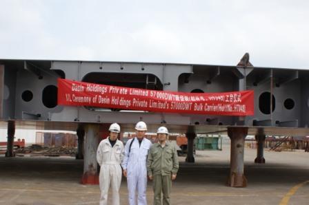 2010年3月18日,我司為大新船東建造的57000DWT散貨輪(船體號(hào):HT071)于上午10:00在我司開工,該船入ABS船級(jí)社,大新控股有限公司張?zhí)m水總經(jīng)理,韓通船舶重工有限公司執(zhí)行董事武亦文,ABS船級(jí)社代表參加了該儀式。