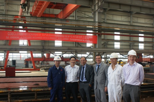 我司為意大利船東COECLERICI集團(tuán)建造的55000噸自卸散貨船(船體號(hào)HT081)于2010年9月16日上午10:30在我司船體車間舉行開工儀式,該船入意大利船級(jí)社,代理公司為蘇美達(dá)貿(mào)易公司。HT081為該項(xiàng)目系列船中的第2條,將于2012年交付船東。陳興副總,船東代表及船級(jí)社代表參加該儀式。開工點(diǎn)火后,共同簽署了開工文件。