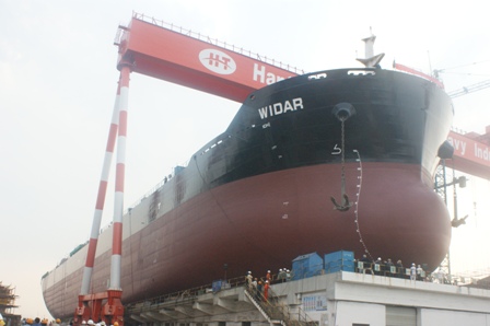 2010年10月8日江蘇韓通船舶重工有限公司迎來了又一個(gè)值得慶祝和紀(jì)念的日子—HT026的命名及下水儀式。該57000DWT散貨輪為我司為船東PD建造,入LR船級(jí)社,該船被命名為“WIDAR”。韓通重工副總經(jīng)理陳興先生,塔姆克航運(yùn)公司迪特里?!に房讼壬?,圣母克里斯汀娜·科普克,Peter Doehle公司W(wǎng)erner Gerdts先生,英國(guó)勞氏船級(jí)社高級(jí)驗(yàn)船師田莊先生等參加了該儀式并發(fā)表講話。