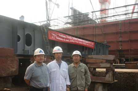 我司為大新船東建造的57000噸散貨輪(船體號(hào)HT071)于2010年10月9日下午 14:30在我司1號(hào)船臺(tái)舉行了上臺(tái)儀式,該船入ABS船級(jí)社。韓通重工副總李繼念及船東、船檢代表參加該儀式。