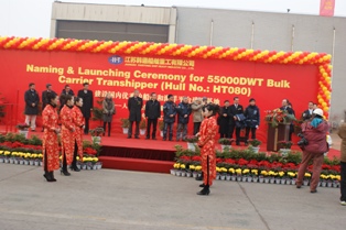 55000噸自卸散貨輪(船體號HT080)命名及下水儀式
