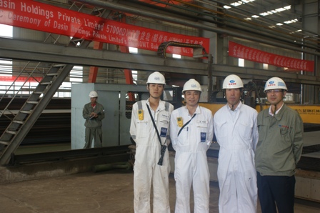 2011年6月8日,我司為大新船東建造的57000噸散貨輪(船體號:HT082)開工儀式在韓通新船體車間順利舉行,該船入LR船級社。韓通重工副總經(jīng)理潘學軍及船東、船級社代表參加了該儀式。