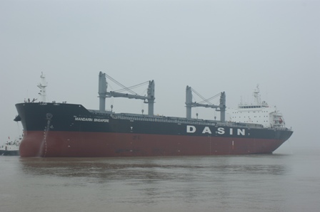 2011年7月8日,我司為大新建造的57000噸散貨輪(HT068)經(jīng)過為期4天的試航試驗(yàn)后,圓滿試航歸來,入LR船級社。此次試航順利完成各項(xiàng)交驗(yàn)項(xiàng)目,并達(dá)到船東、船檢的要求,圓滿完成了該船的試航任務(wù)。