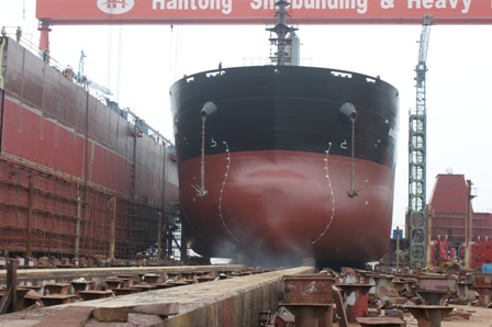 2011年7月31日, 我司為 DA SIN 建造的57000DWT散貨輪(HT045)在韓通1號船臺成功下水,該船入BV船級社。武亦文總經(jīng)理,陳興副總,李繼念副總,船東代表及船級社代表參加該儀式。