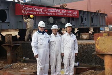 我司為Eagle Bulk船東建造的57000DWT散貨輪(船體號(hào):HT092)于2011年11月25日上午10:00在我司2號(hào)船臺(tái)舉行了上臺(tái)儀式,該船入LR船級(jí)社。李繼念副總及船東船檢代表參加了該儀式。