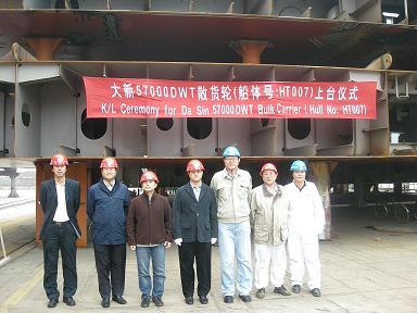 11月26,為新加坡大新船東建造的57000噸散貨輪(HT007)在韓通重工隆重舉行了上臺儀式,此為姐妹船的第二艘,將在2008年8月底交付使用,入BV船級社,貿易公司為江蘇蘇美達船舶公司。