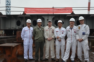 我司為 PD 建造的38000DWT散貨輪(船體號:HT38-133)于2014年10月31日在我司2號船臺舉行了上臺儀式,該船入LR船級社。董繼紅總經理助理及船東、船檢參加該儀式。