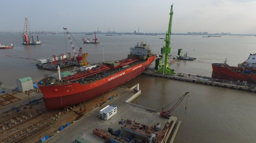 2016年9月22日,我司為船東中化船務建造的38000 DWT不銹鋼化學品船(船體號:HT-CT38-004)順利下水,該船入LR 和CCS船級社。公司領導、船東、船檢代表參加該下水儀式。