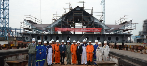 2016年10月18日,我司為美國船東Vulica公司建造的68000噸自卸船(船體號:HT68-219)舉行上臺儀式,該船入LR船級社。公司領導、船東、船級社代表參加該儀式。